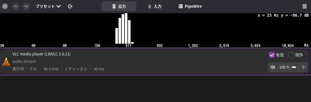 これでメニュー → マルチメディア → EasyEffects を押すだけで