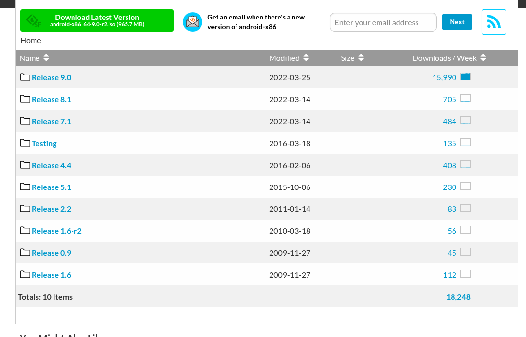 Stable(安定版)から「android-x86-8.1-r6」や「android-x86-9.0-r2」あたりが無難。