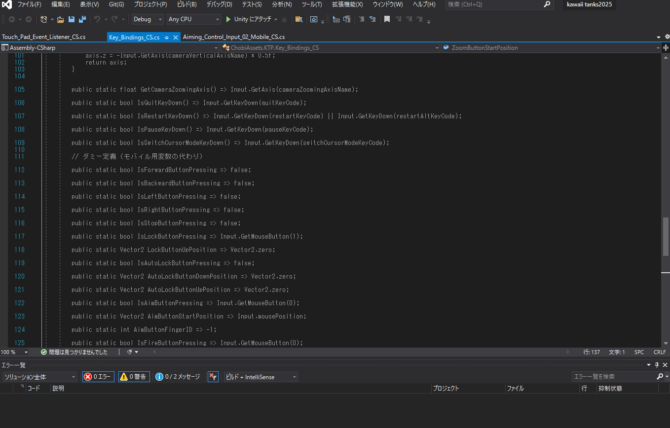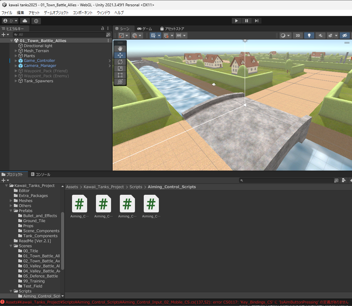 エラーが出ました。Unityは改造すると、だいたい、1回でうまくいったりしません。