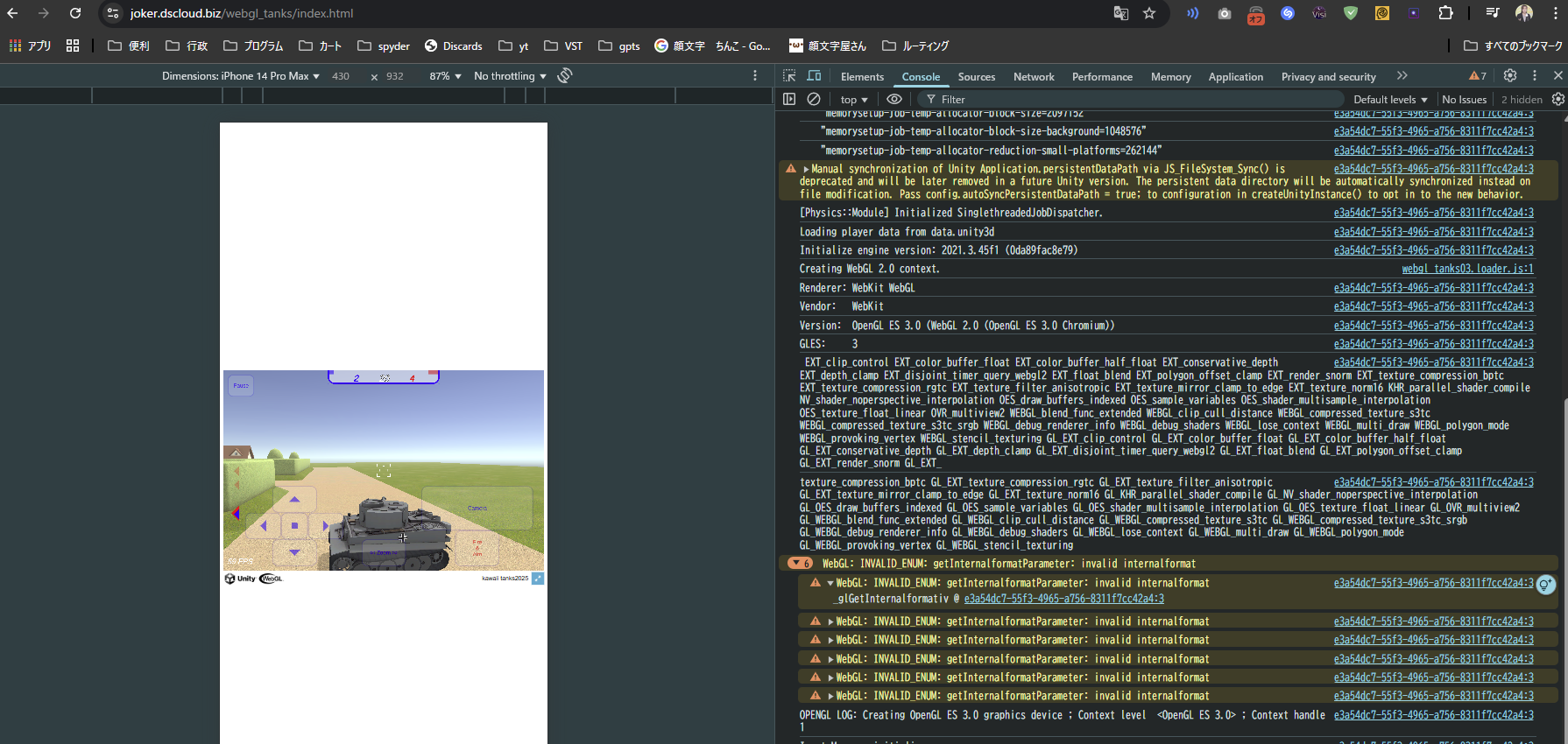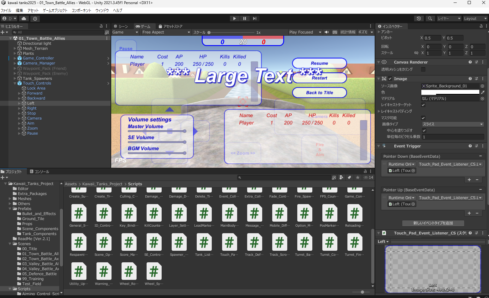 このプレイヤー部分からWEBGL向けに設定を見直します。